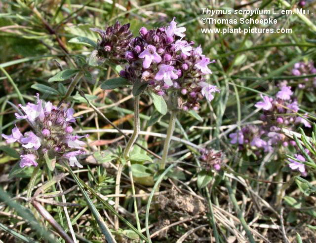 Synonyme Drogenbezeichnungen: Deutsch: Feldthymian, Thymus-serpyllum-Kraut. Englisch: Wild thyme. Lateinisch: Herba Serpylli.